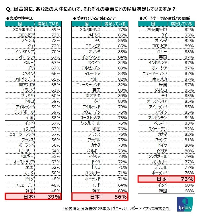 イプソス「恋愛満足度調査2025年版」グローバルレポートを公開