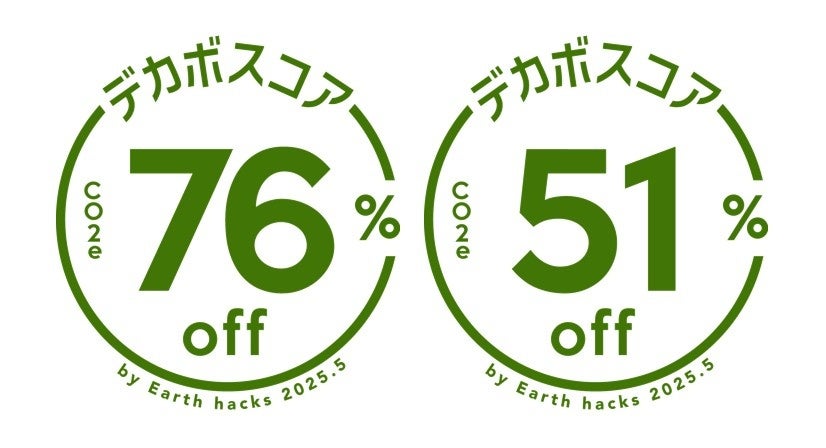 Earth hacks株式会社が提供する、製品やサービスにおけるCO2排出量*の削減率をスコア化した指標です。従来の素材や手法を用いた商品等と比較し、環境に配慮した工夫によって変化するCO2排出量の削減率を表示し、製品やサービスの環境貢献度をひとめで、わかりやすく伝えます。2022年7月に提供を開始し、2025年5月時点で950以上の製品・サービスへ導入されています。