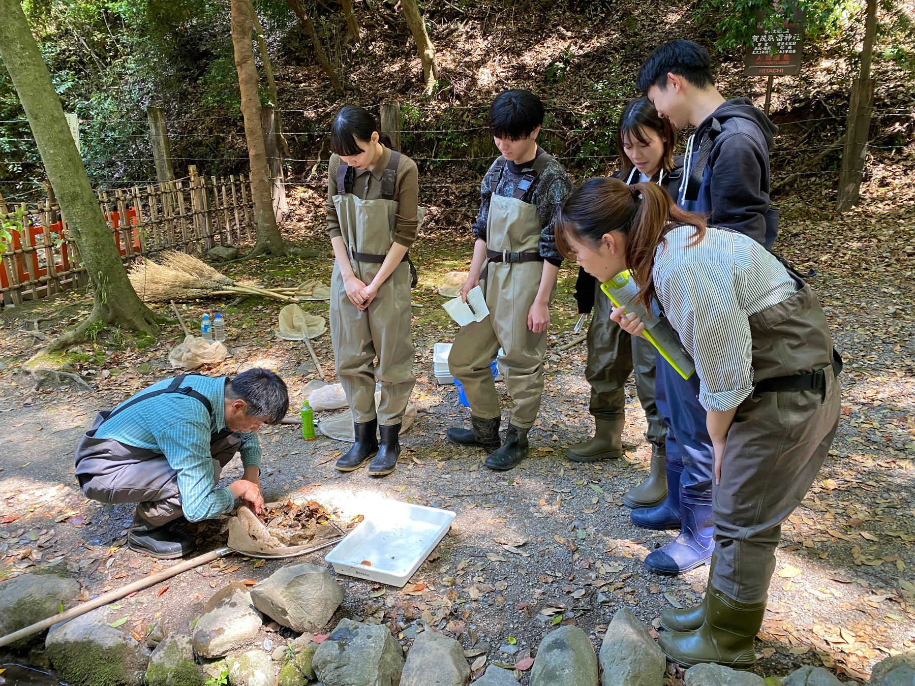本催事に先立ち、日本全国で減少しつつある夏の風物詩「蛍」を守るため、神社境内に流れる「ならの小川」の環境整備を実施しました。環境動物昆虫学を専門とする大阪公立大学平井規央教授による指導のもと、Earth hacksのデカボアンバサダーが参加し、蛍の生息環境である水辺の清掃などを行いました。