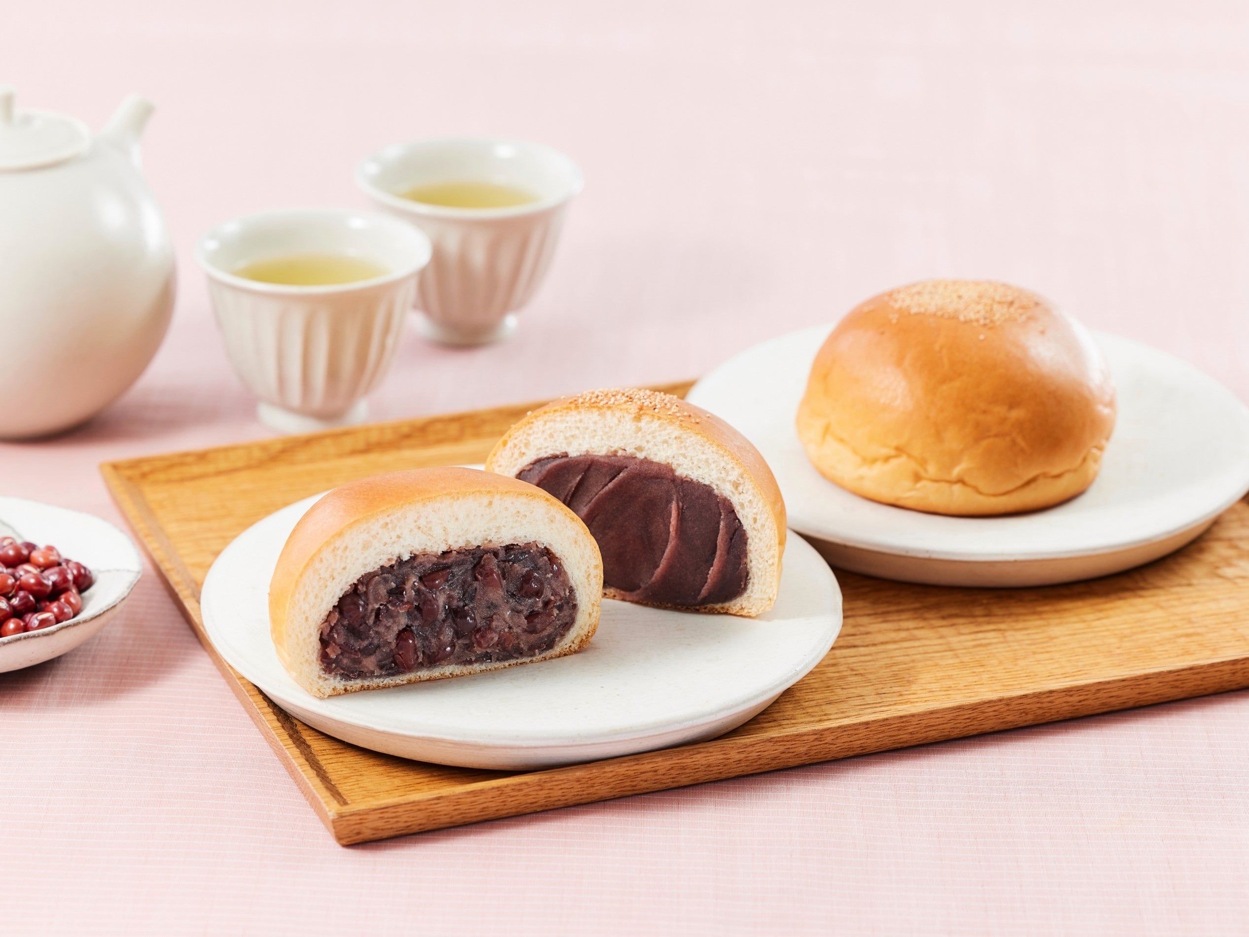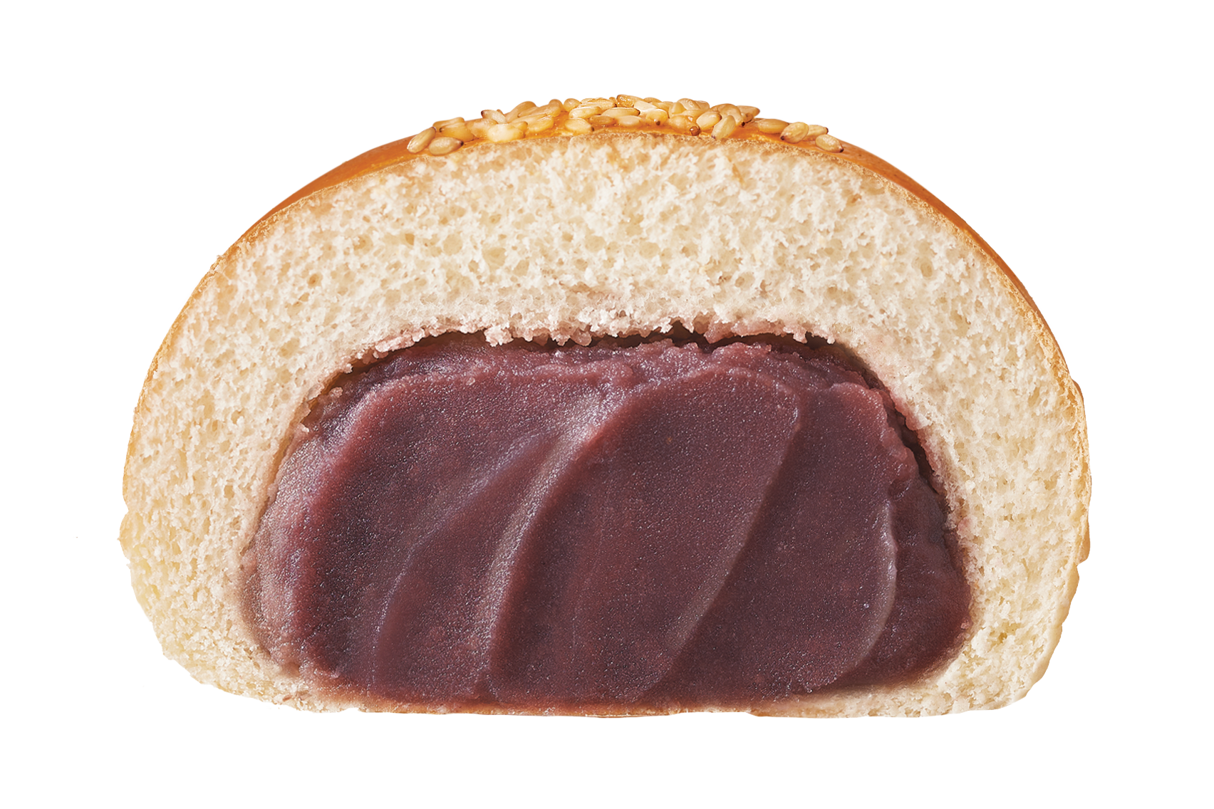 酒種入りの風味豊かなパン生地で、十勝産あずき100%のこしあんに静岡県産桜葉の塩漬けを練りこんださくらあんをたっぷり包み、表面に白ごまをトッピングして焼き上げました。