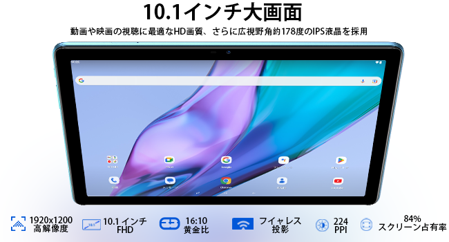 DOOGEE T10Sは、260cd/m²の輝度と1920 x 1200の解像度を持つ10.1インチIPSディスプレイを搭載しており、優れた色再現性と演色性、広い視野角を実現し、作業、動画鑑賞、ゲームに適しています。また、反射を抑えるIn-cellシステムにより、ディスプレイ性能にも十分配慮しており、ゲームやビデオで素晴らしい視覚体験をお約束します。