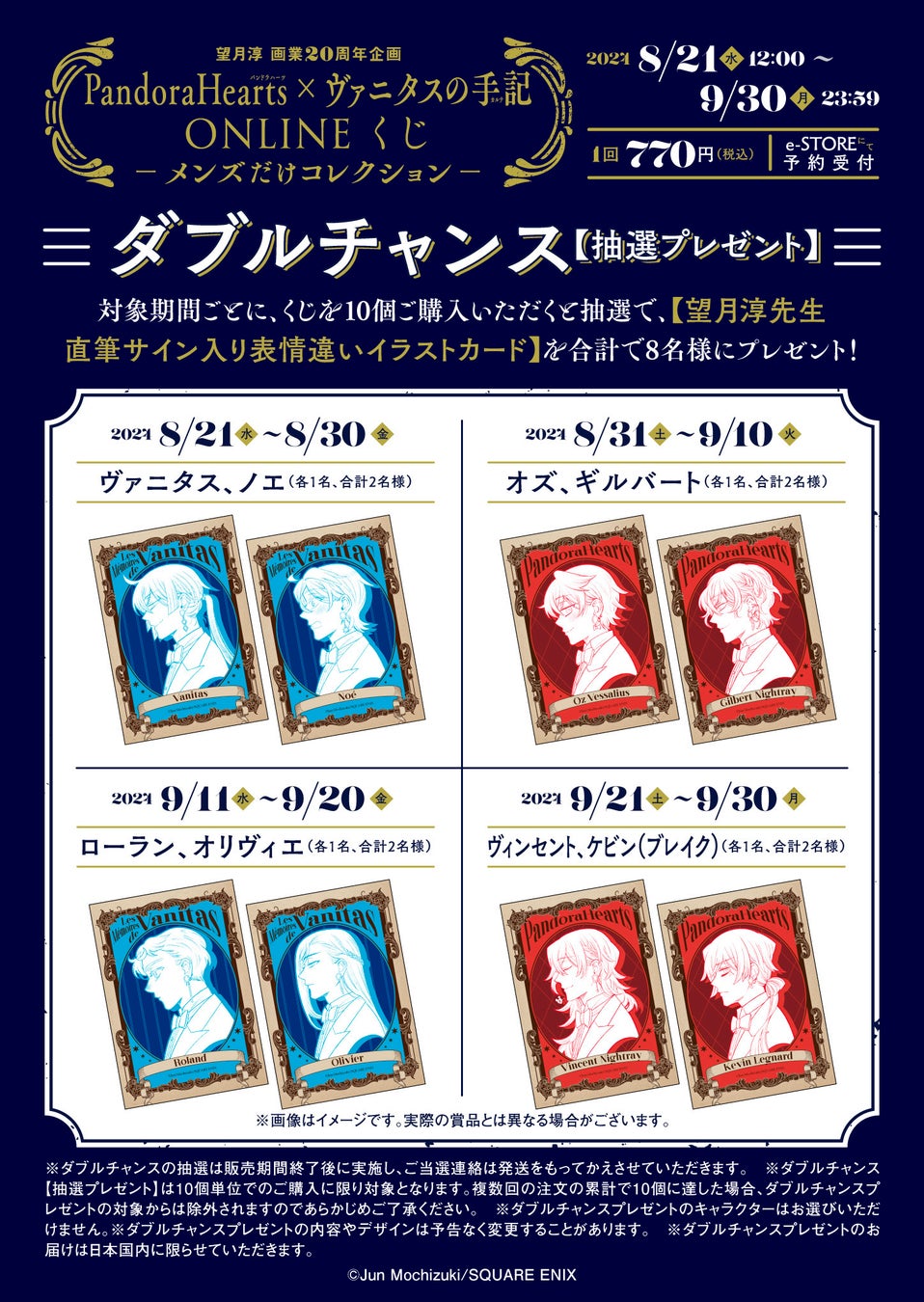 【「望月淳 画業20周年企画 PandoraHearts×ヴァニタスの手記 オンラインくじ-メンズだけコレクション-」オンラインくじ概要】