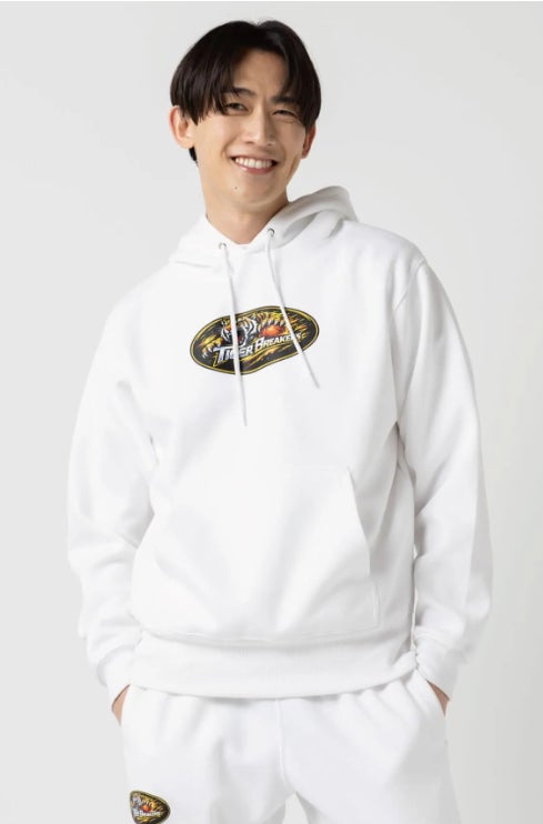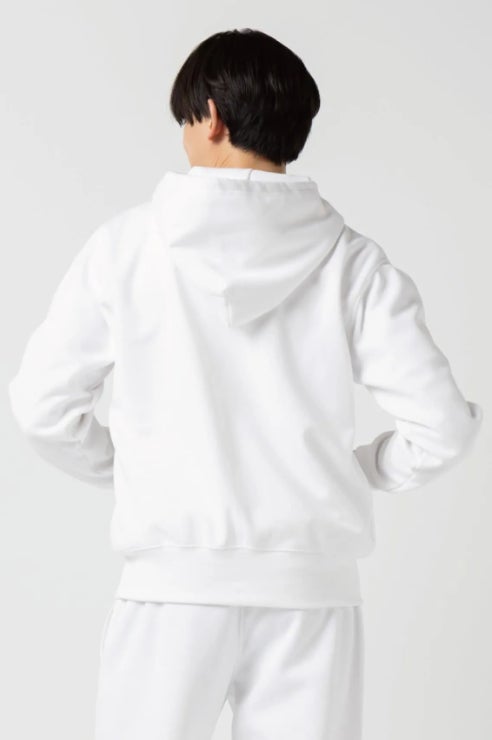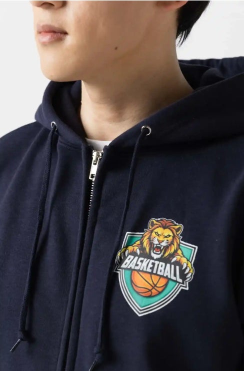 プルオーバー仕様のパーカー。軽量で動きやすく、スポーツやイベント用途に適しています。
