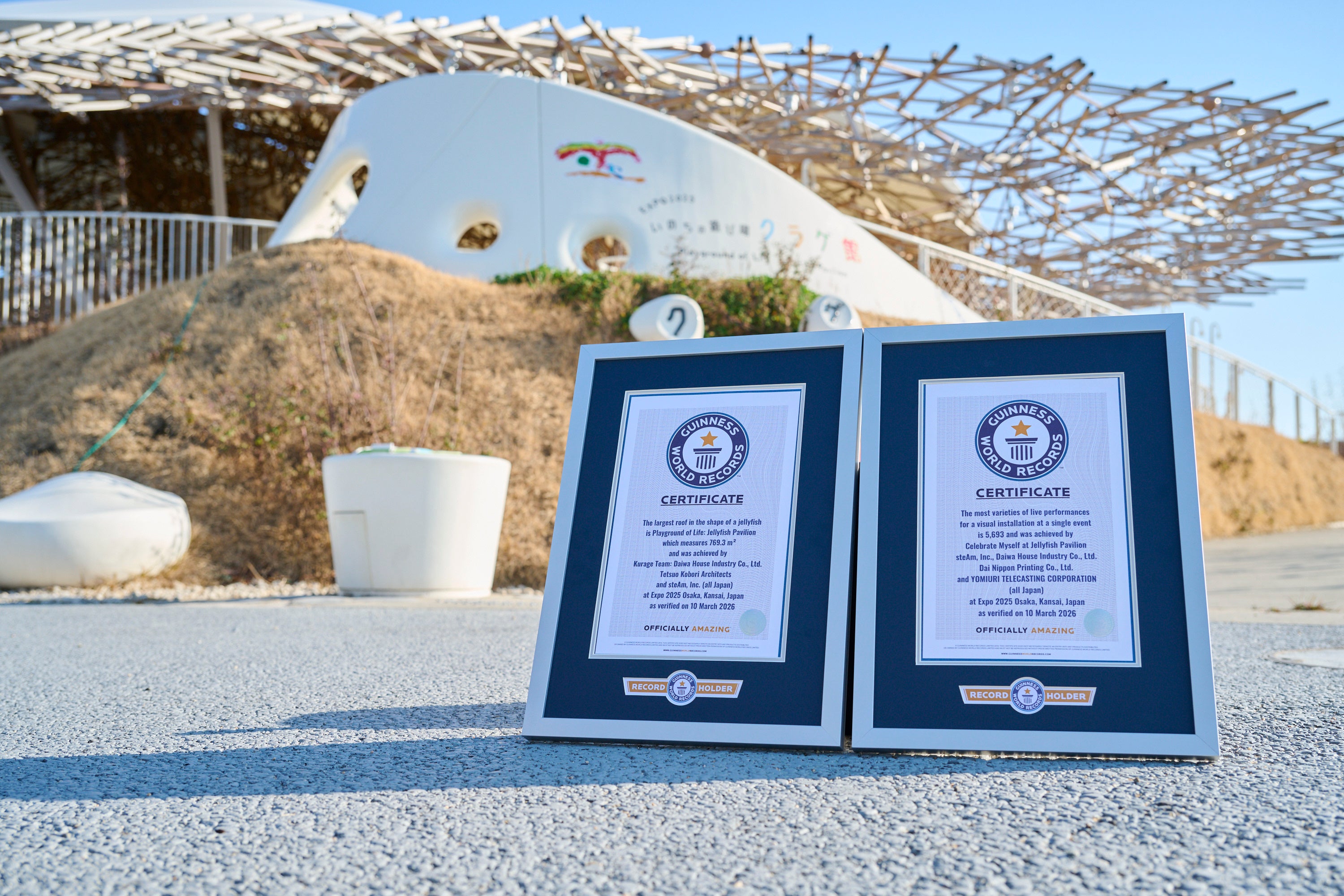【ギネス世界記録™】2025年大阪・関西万博「いのちの遊び場 クラゲ館」映像体験にあわせた5693バリエーション生演奏と世界最大769.3㎡のクラゲ形状大屋根で2つの世界記録を達成