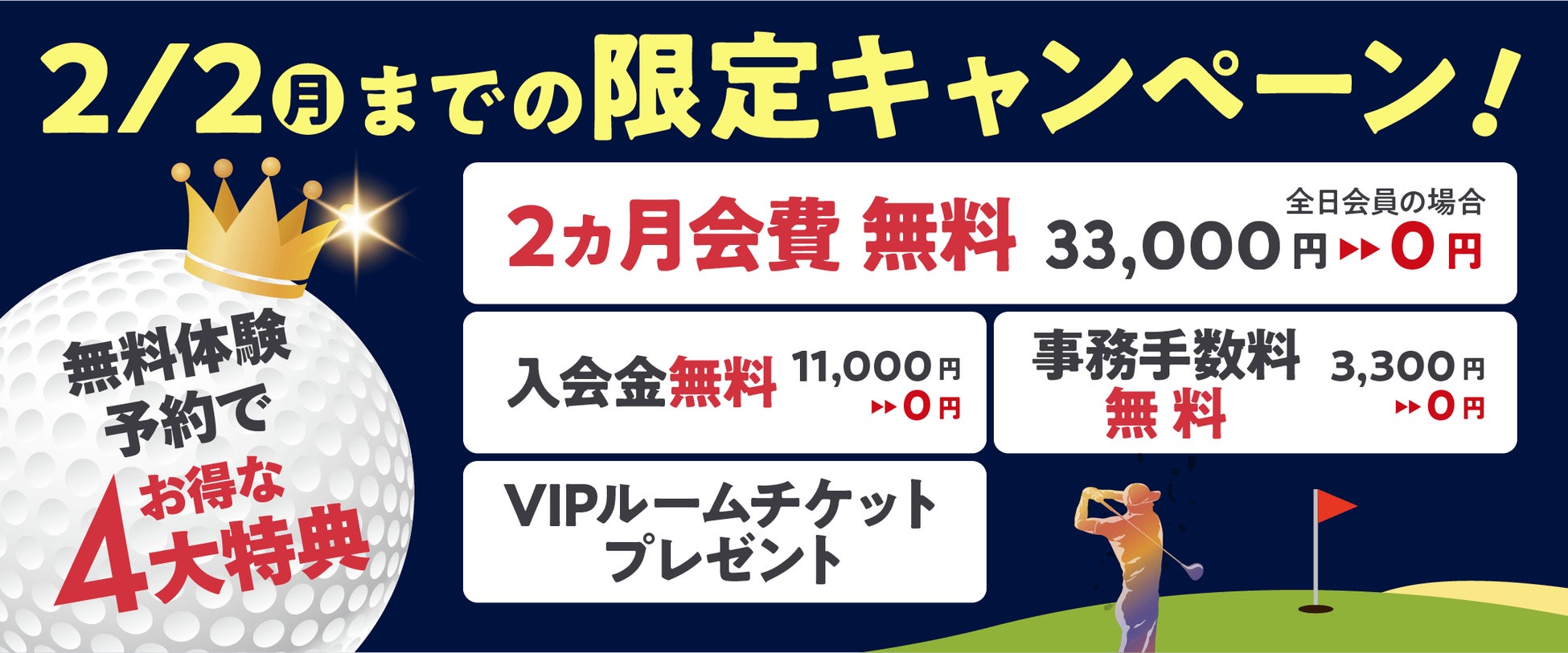 2ヵ月会費 無料 (全日会員の場合 33,000円 → 0円)