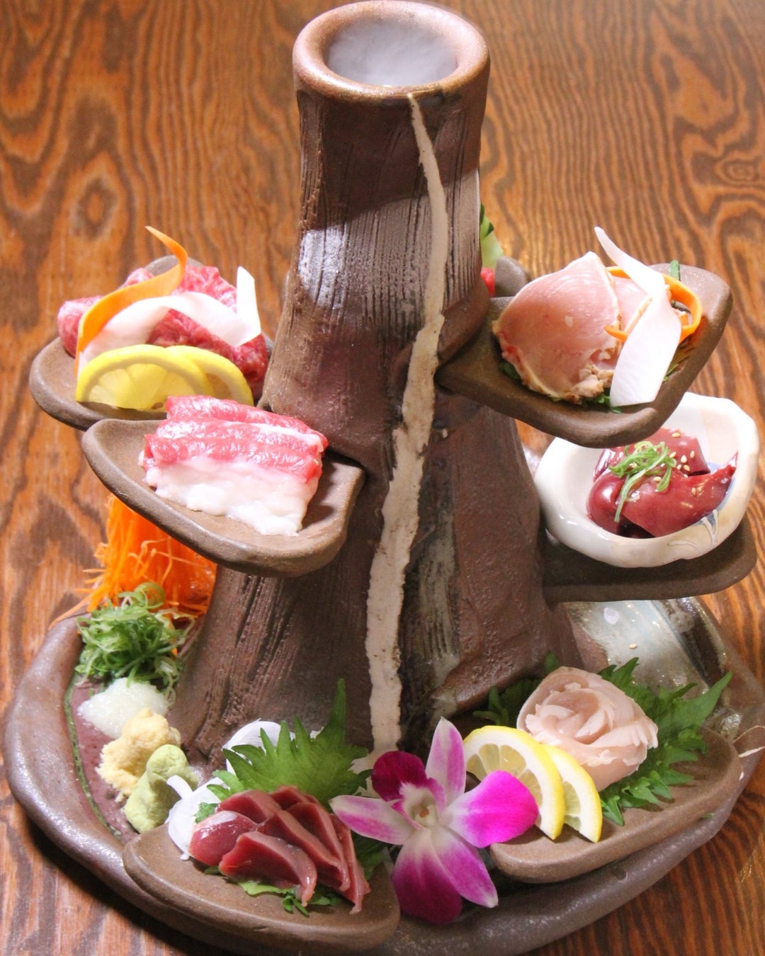 自慢の名物「満開にほんいち盛り」は馬刺しも鶏刺しも同時に楽しめる!