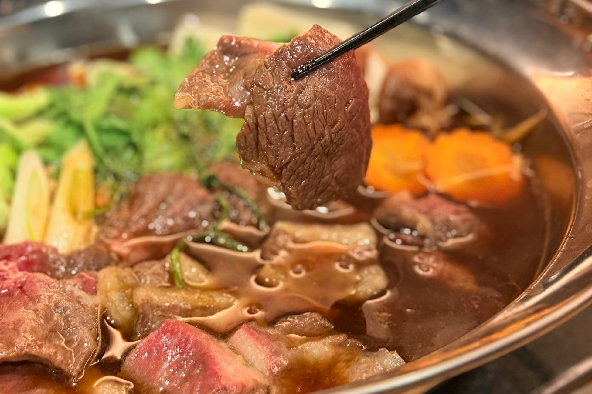 今回の目玉となるのは、「桜鍋」です。桜鍋とは、鮮やかな桜色の馬肉をすき焼き風に煮込んだ贅沢な鍋料理で、馬肉本来の旨味を引き出した割下と共に、柔らかくジューシーな馬肉を存分に味わえます。当店では贅沢に生でも食べられる新鮮な馬肉を5種類(モモ、ロース、バラ、フタエゴ、中落ちカルビ)ご用意しており、軽くしゃぶしゃぶして食べるのも良し、しっかり火を通して食べるのも良し。部位や加熱加減でそれぞれの食感を楽しめるのが魅力です。桜鍋はそのままでも美味しいですが、お好みで卵を絡めていただくと、まろやかなコクが加わり、さらに贅沢な味わいになります。新鮮な馬肉をたっぷり楽しめるこの一品が、当コースの最大の押しポイントです。鍋の余韻を存分に楽しめる締めは、濃厚なスープを雑炊で味わうか、うどんの喉ごしで締めくくるか、お好きな方をお選びください。