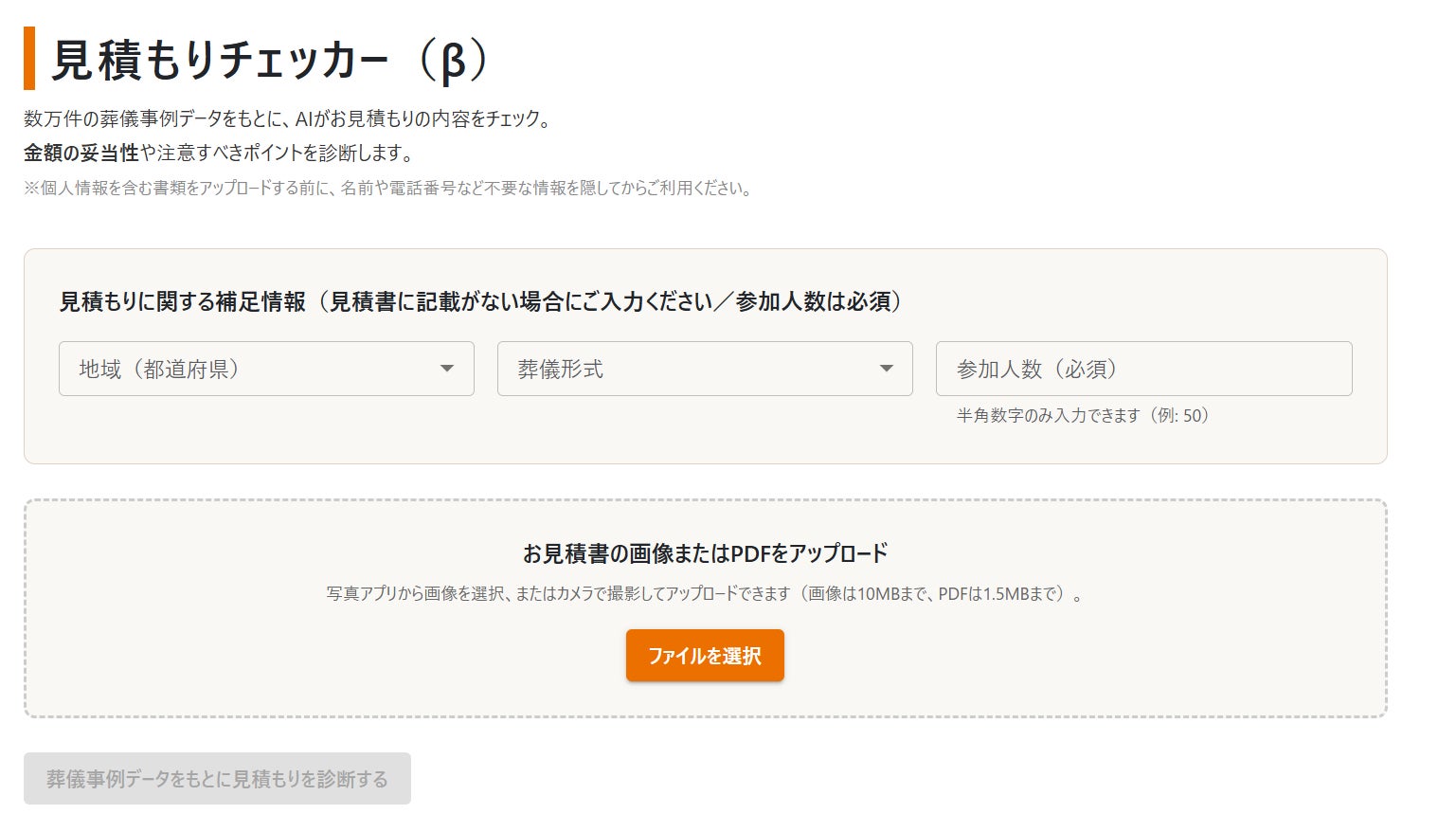 葬儀の見積もりが相場と比べて適正かどうかを、AIが約1分で診断します。