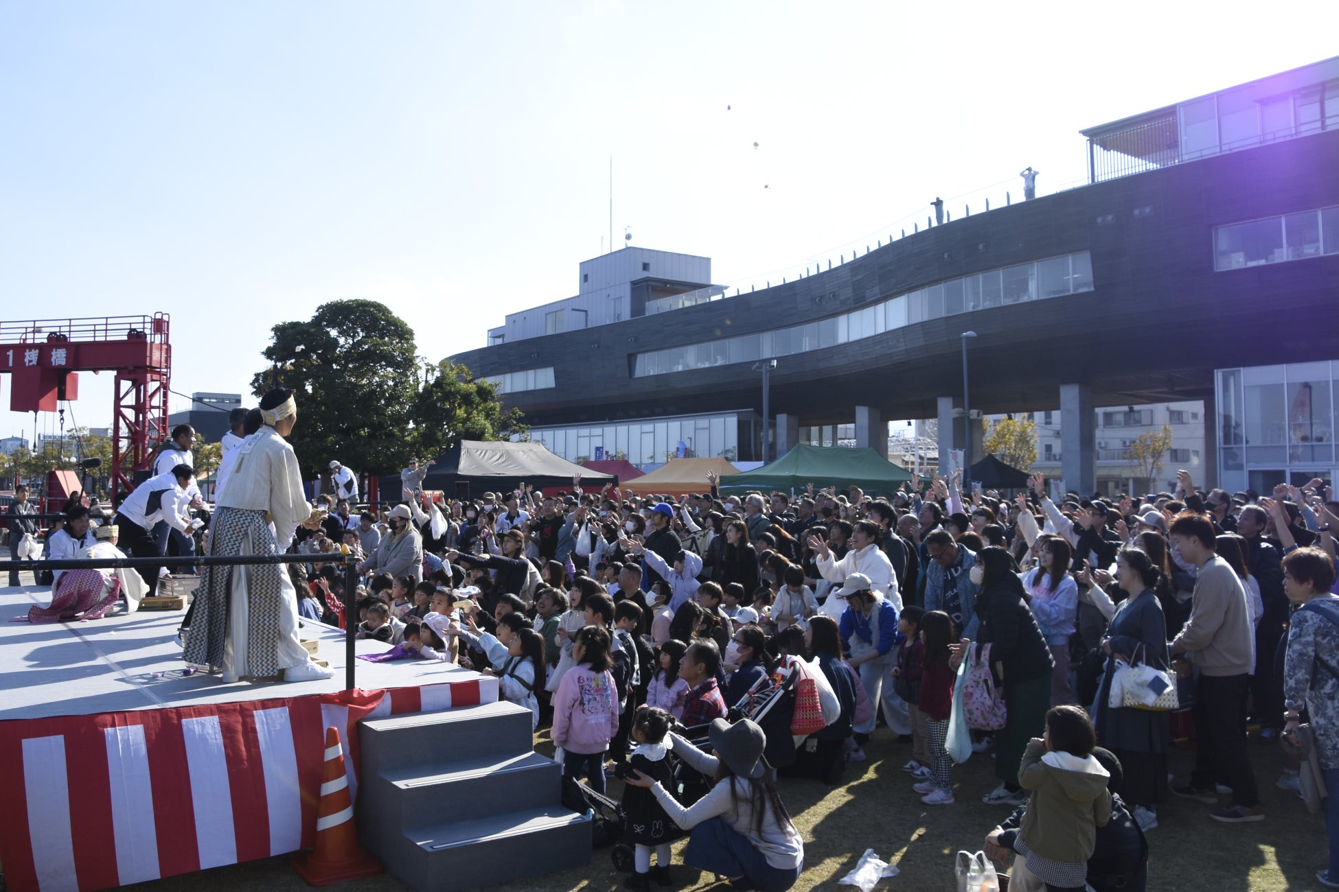 お楽しみは店舗だけでなく、会場内のステージでは毎回趣向を凝らしたイベントを実施。3周年記念開催となった2025年11月23日には、3,000個の餅とタオルを大盤振る舞いした「餅まき大会」を開催し、大いに盛り上がりました。