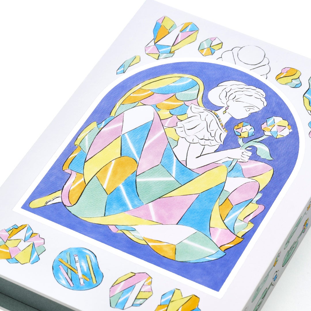 イラストを側面や裏面まであしらったボックスは、パッケージとしてだけでなく、小物入れとしてもお使いいただける特別仕様。上品にきらめく箔押し加工が施されているのに加え、ボックス内側には異なるカラーを配し、開ける瞬間の楽しさも演出しています。
