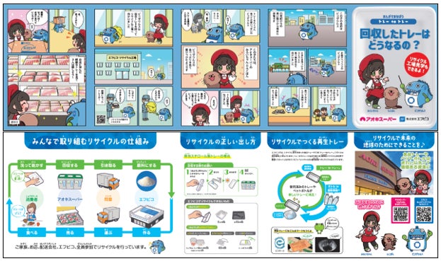 食品容器製造メーカーのエフピコによる『トレーtoトレー』の水平リサイクル(店頭で回収した食品トレーを新たな食品トレーに生まれ変わらせる資源循環の仕組み)について、当社オリジナルのリーフレットを使いながら、まんがで楽しく学べる授業を実施