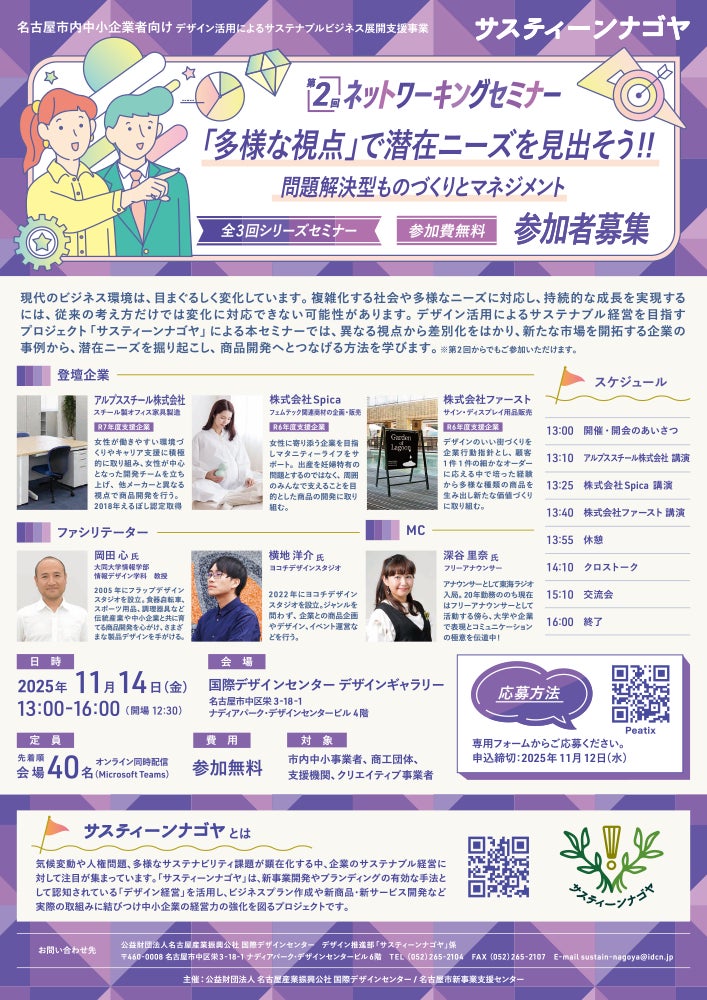 多様な視点で潜在ニーズを掘り起こし、商品開発に結びつける!サスティーンナゴヤ 第2回ネットワーキングセミナーを、11月14日(金) に開催【オンラインあり】