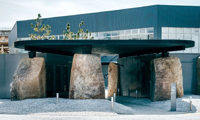 竹村さんは、幼少期に大きな石と共に過ごした原体験と、日本に古くから根付く「自然物にいのちが宿る」という八百万(やおよろず)の神の思想を背景に、これらの石を「いのちあるもの」として捉え、傷つけることなく建築にそのまま取り込むことを目指しました。伝統的な石場建ての技術「光付け」と、現代の3D スキャンや5軸 NC加工技術を融合させ、石の表情にぴたりと合う木材を設えるという新たな工法に挑戦しました。