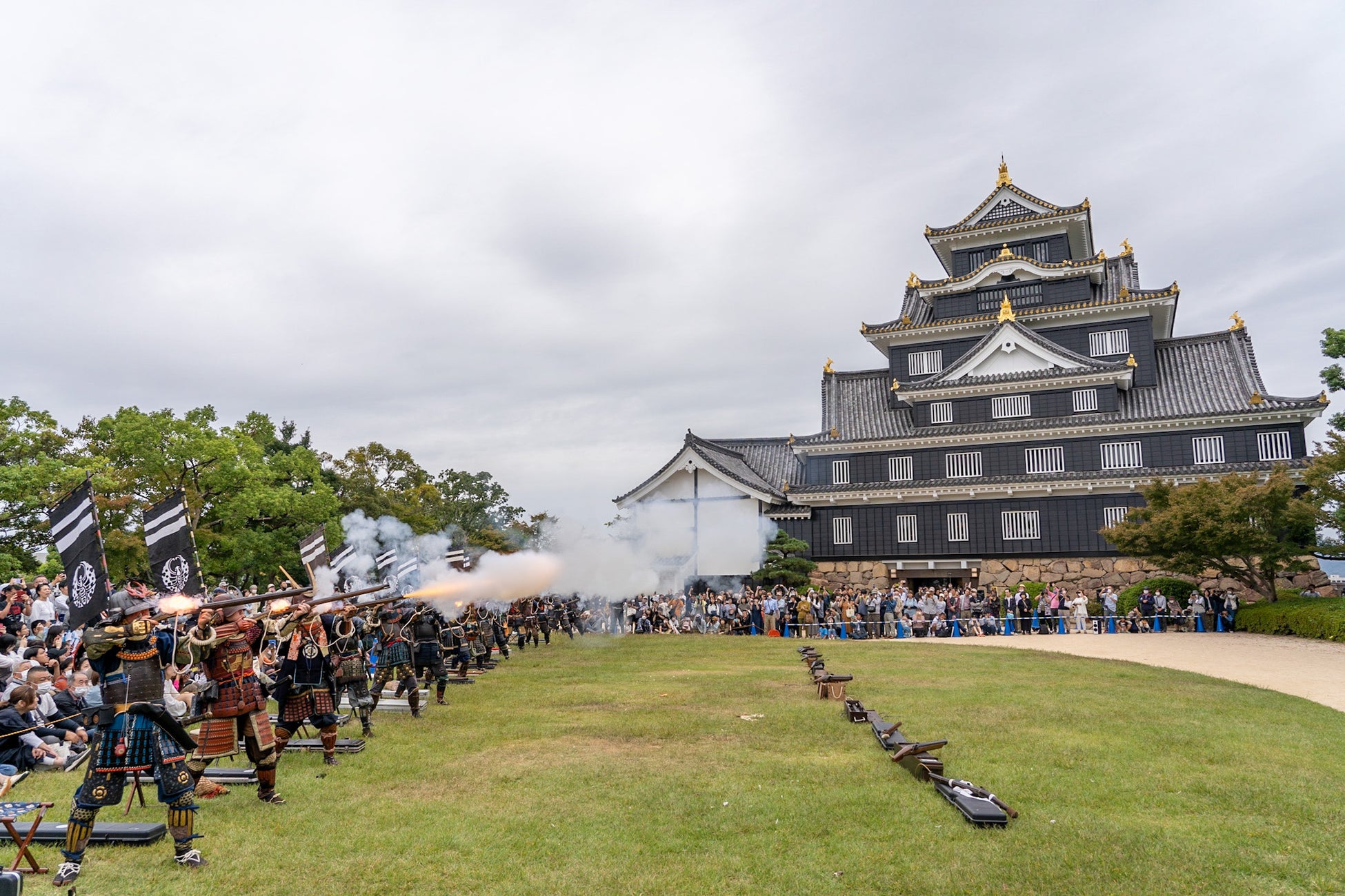 備州岡山城鉄砲隊が大迫力の演武を披露します。
