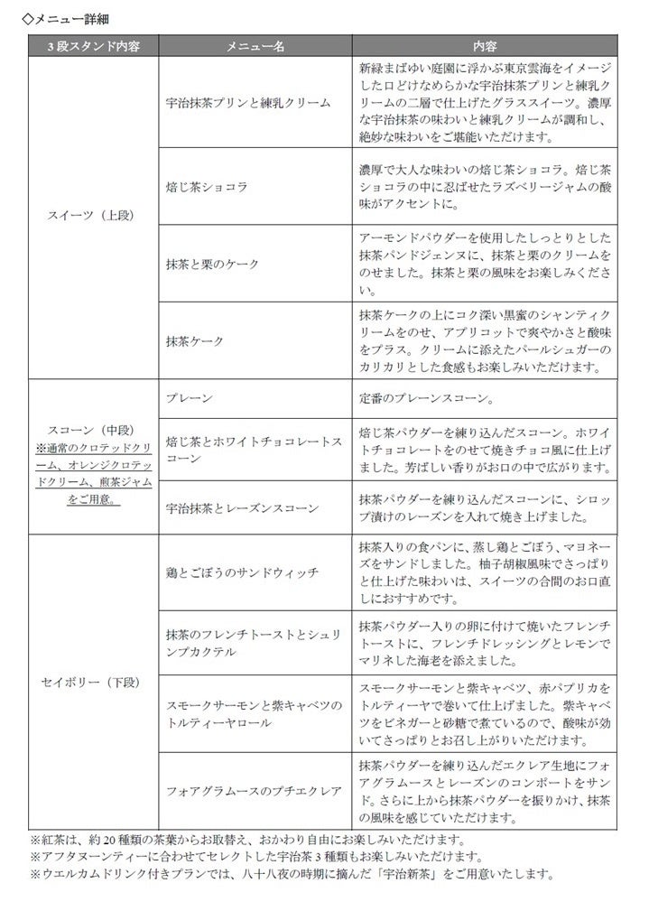 【ホテル椿山荘東京】新緑の季節に香り高い宇治茶の世界観に浸る 1860年創業のお茶の老舗 京都・宇治「辻利兵衛本店」とコラボレーション「Premium宇治茶アフタヌーンティー」を5月1日よりスタート