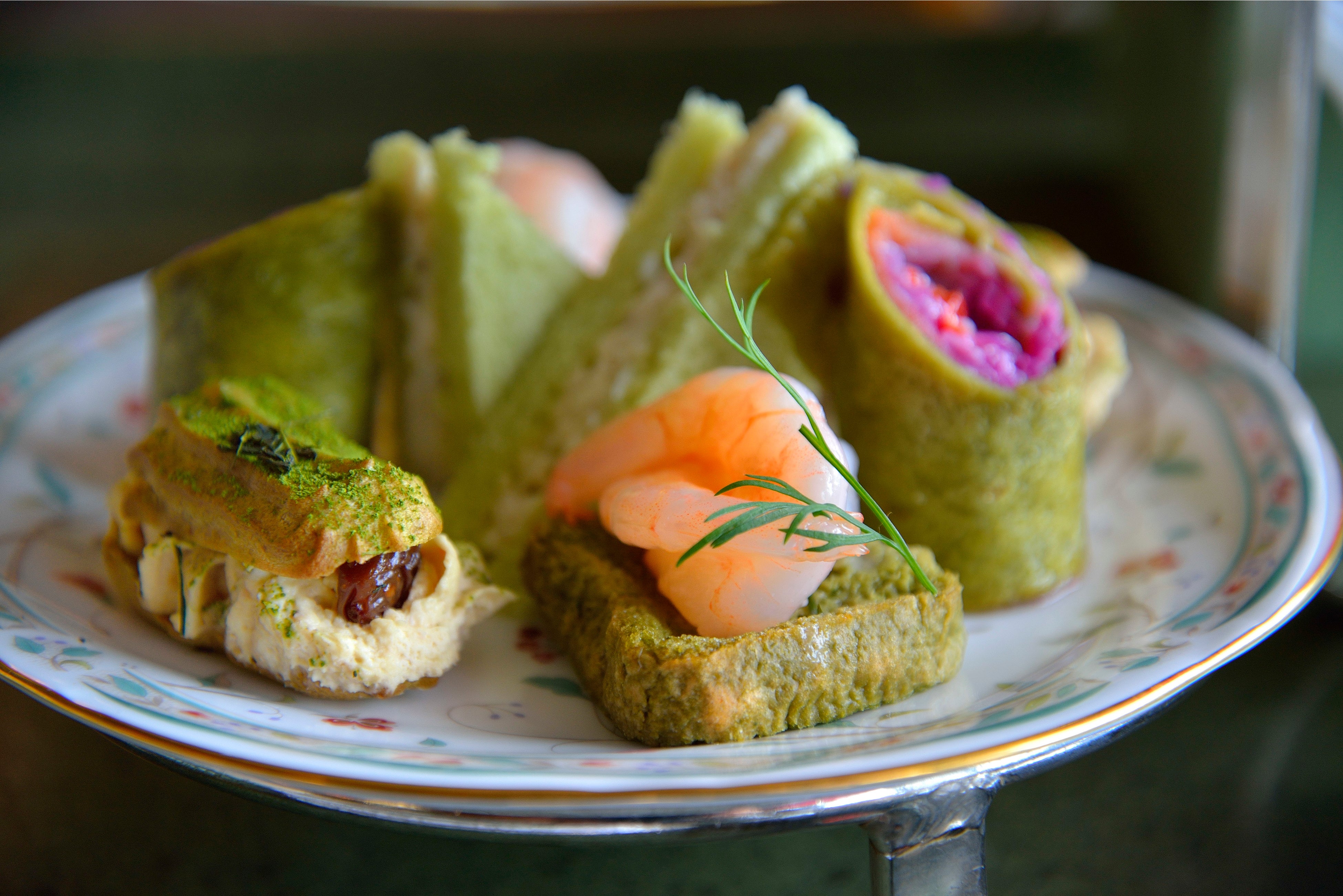 また、抹茶入りの食パンを使用した鶏とごぼうのサンドウィッチや抹茶のフレンチトーストとシュリンプカクテルでも抹茶を使用。宇治茶の世界観を存分にお楽しみください。