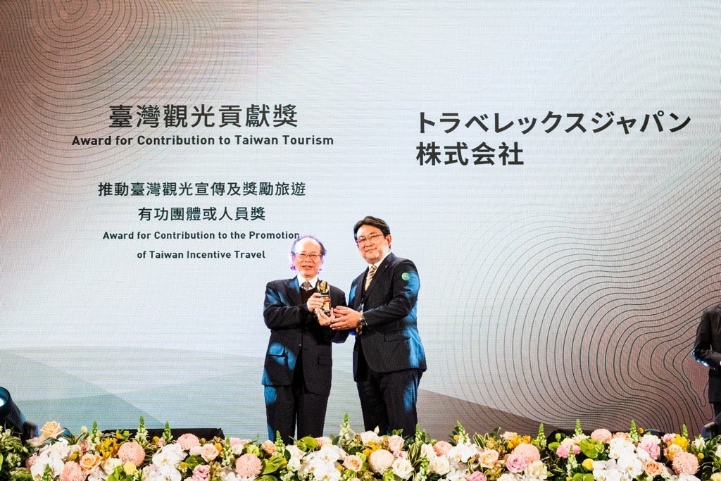 台湾観光貢献賞は、台湾観光への興味・関心を促すことに貢献した企業や団体に贈られる賞です。授与式では、副総統、観光局長など台湾の代表から受賞者に記念のトロフィーが授与されました。