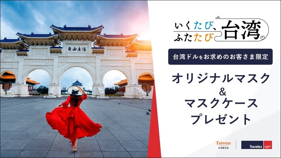 | 『いくたび、ふたたび台湾』キャンペーン開催!トラベレックスで台湾ドルをお求めのお客様に、台湾観光局オリジナルノベルティをプレゼント https://prtimes.jp/main/html/rd/p/000000075.000001790.html |