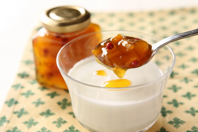 ■概要:マンゴーとパッションフルーツを使用したコンフィチュールです。ピンクペッパーを加えて、