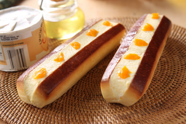 たっぷりと絞ったクリームパンです。マンゴーの風味が詰まったオススメの一品です。