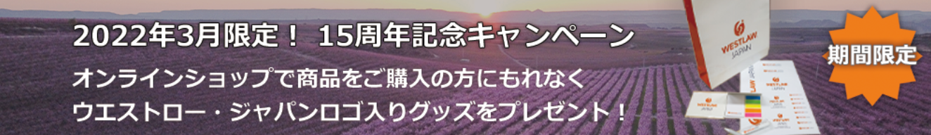 ウエストロー・ジャパン株式会社(東京都港区、代表取締役 ヨンソン・バン)は、設立15周年を記念し、2022年3月1日(火)にECサイトをリニューアルいたしました。また、ECサイトで商品をご購入いただいた方全員にオリジナルグッズを進呈する「15周年記念プレゼントキャンペーン」を、2022年3月1日(火)~3月31日(木)まで実施いたします。