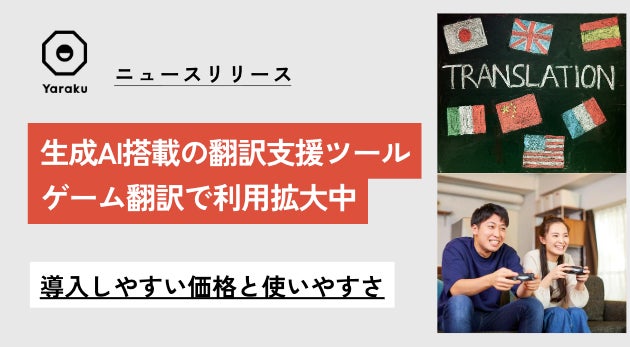 生成AIを搭載した翻訳支援ツール(CATツール*)「ヤラク翻訳」を提供する八楽株式会社(本社:東京都渋谷区、代表取締役:坂西優、以下八楽)は、ヤラク翻訳がゲーム翻訳領域でも利用が拡大していることをお知らせいたします。