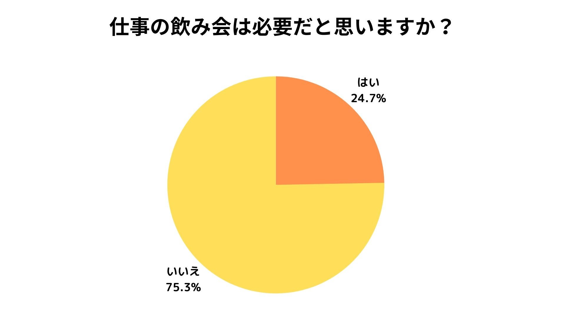 さらに、20代に対して仕事の飲み会は必要かをヒアリングしたところ、いいえと回答する層が75%いることがわかりました。