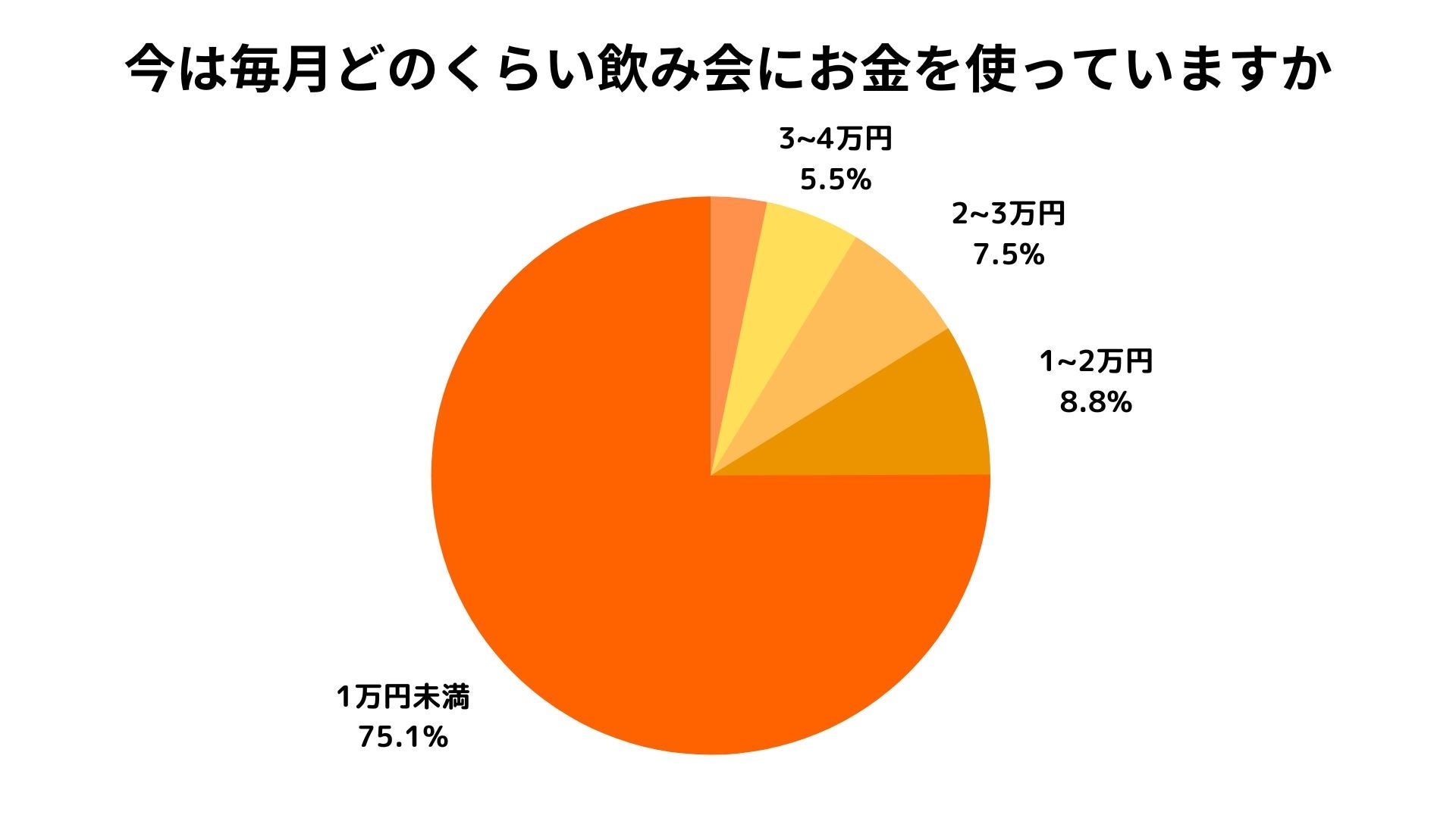 20代に対して今、毎月どのくらい飲み会にお金を使っているかを調査したところ、75.1%もの人が1万円未満と回答しています。
