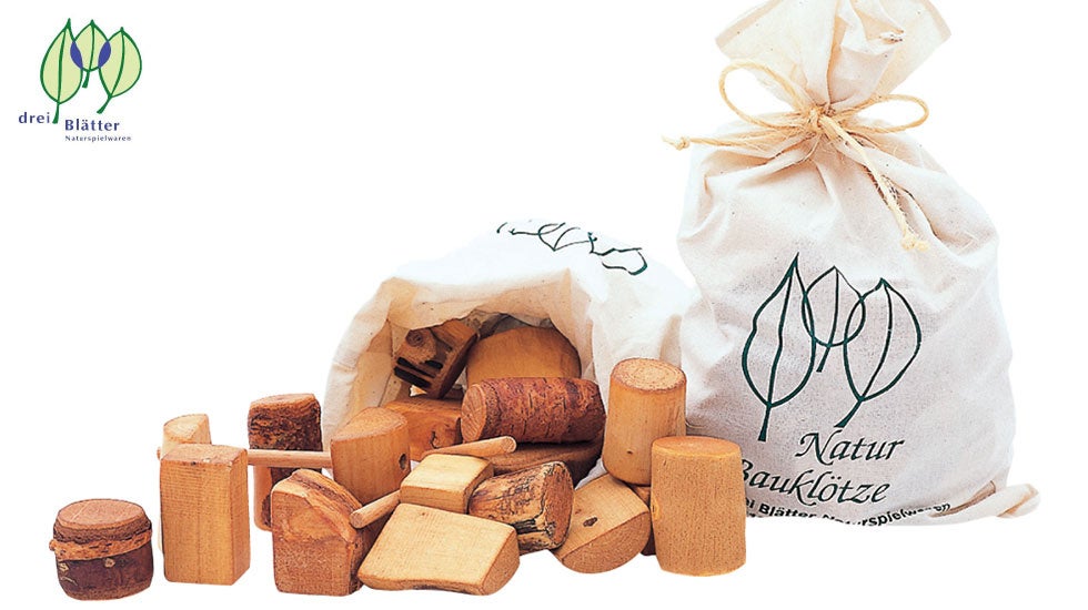 カエデ、ヤナギ、ブナなど多様な材木で作られ、同じ形が2つとない積み木です。口に入れても安全な亜麻仁油で仕上げられています。子どもの想像力を育みます。