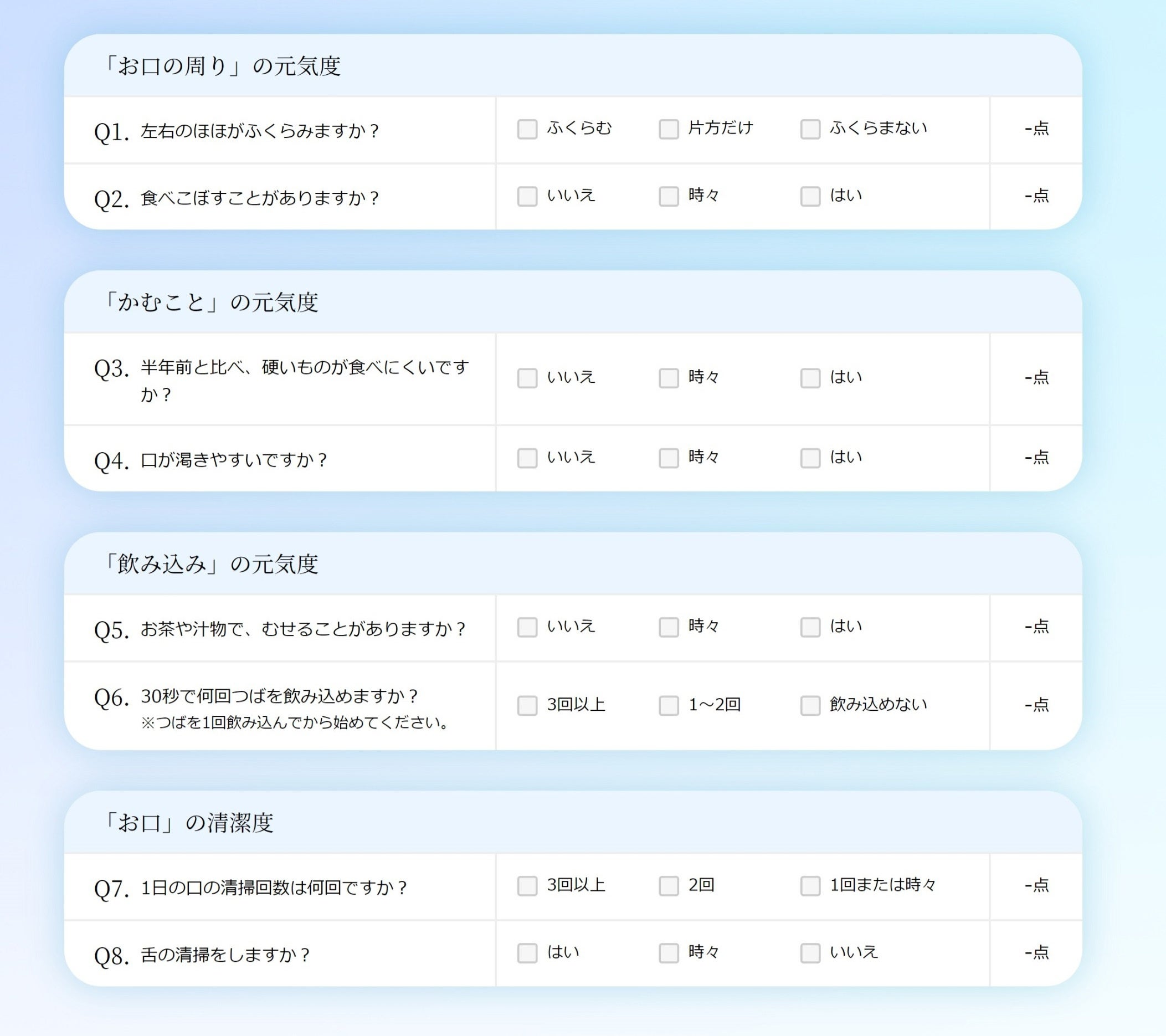 ・オーラルフレイルチェック:お口の健康状態を確認できるチェックリスト