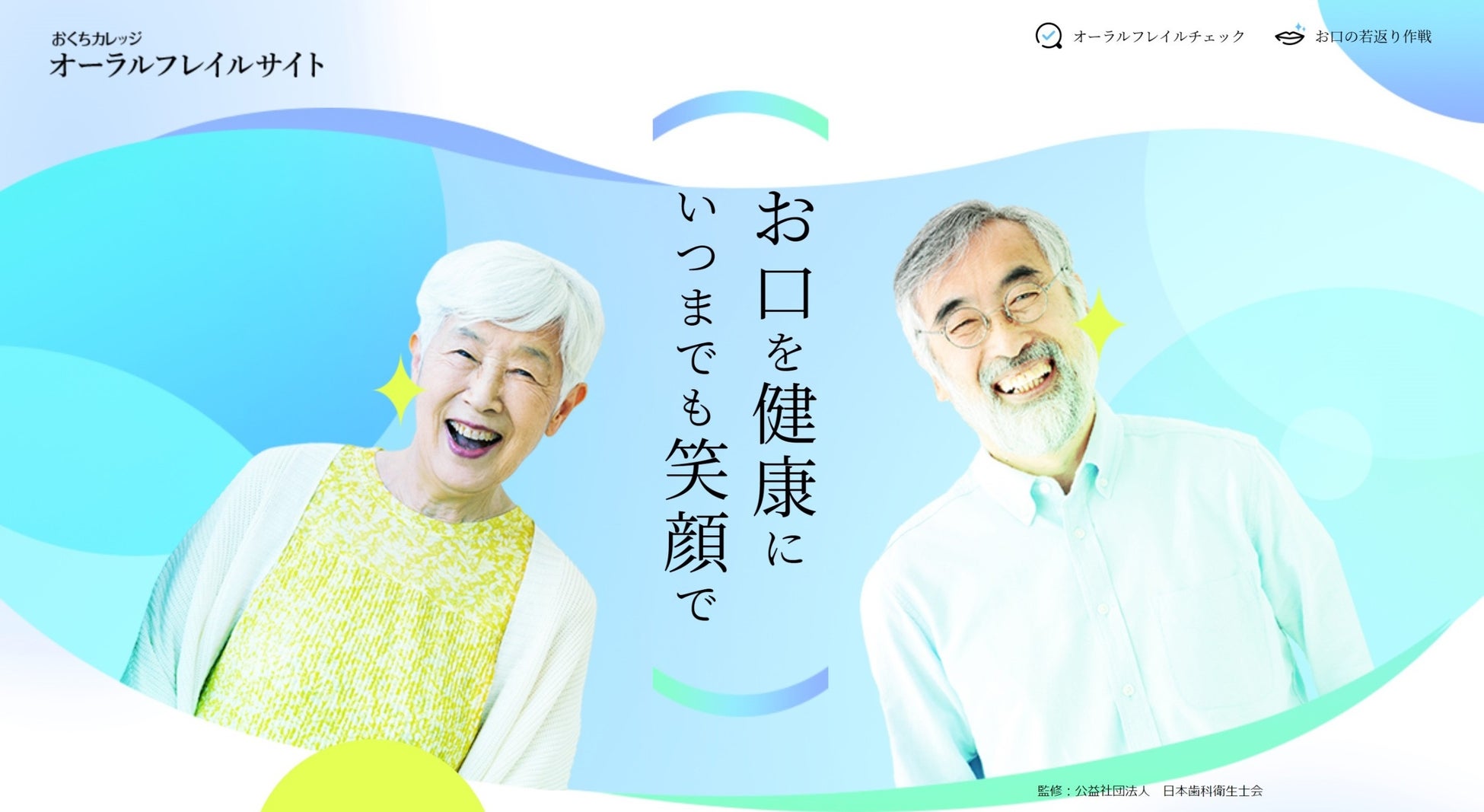 人生100年時代、健康寿命の延伸のためには、お口の健康の維持が重要なファクターであることが分かってきており、とりわけオーラルフレイル対策への関心が高まっています。当サイトでは、「オーラルフレイルチェック」「お口の若返り作戦」等、日本歯科衛生士会監修の分かりやすいコンテンツを展開。当社は有益な情報提供を通じ、引き続き生活者のお口の健康に貢献してまいります。