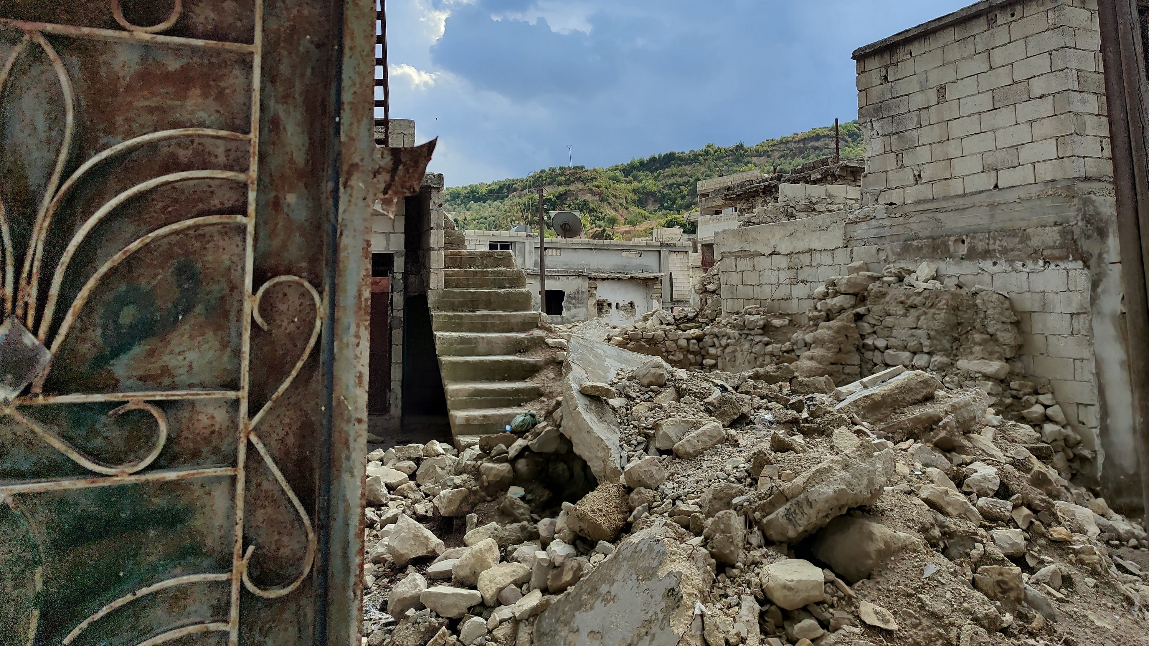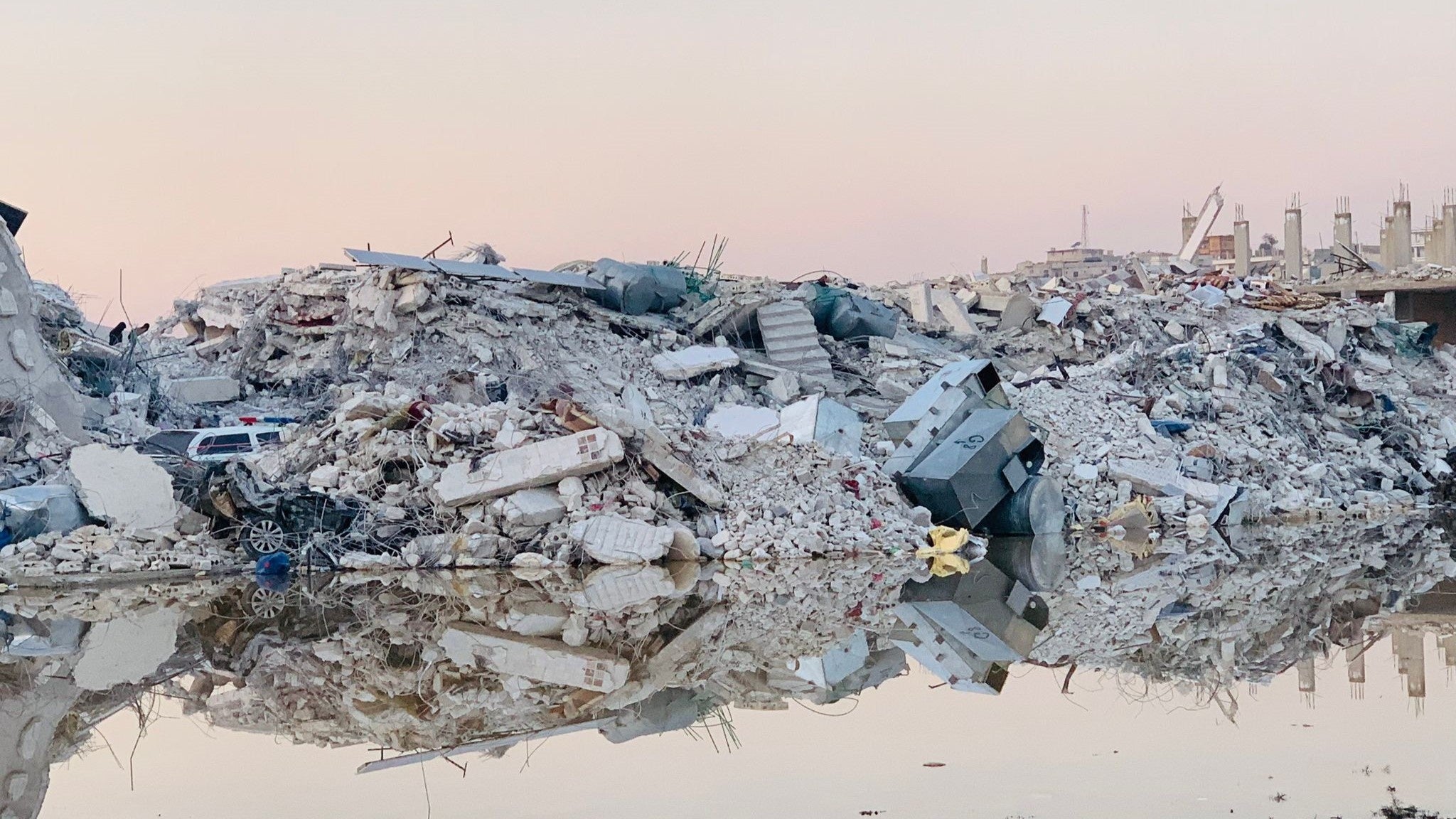 (写真:シリア北西部。被災により崩壊した地区で洪水が発生(2023年2月撮影))