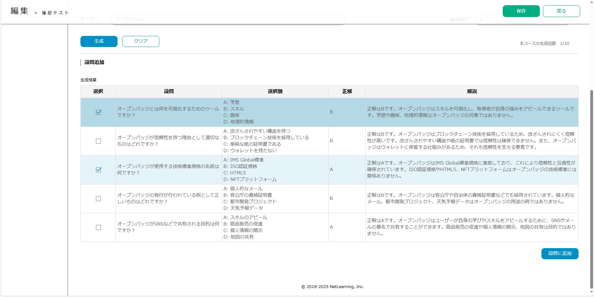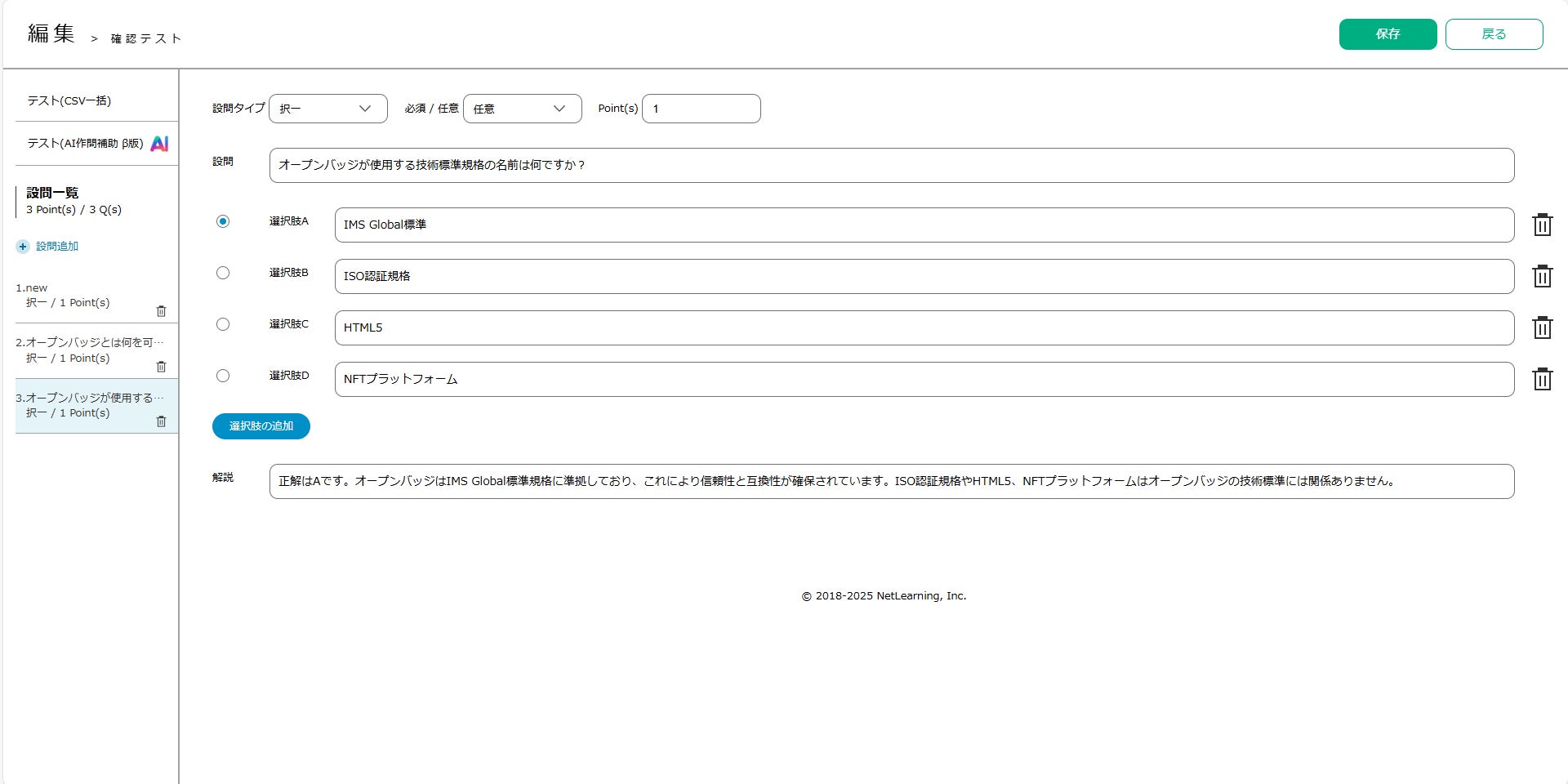 株式会社ネットラーニング(本社所在地:東京都新宿区、代表取締役社長:岸田 徹)は、同社が提供する企業向けeラーニングコース制作ツール「ContentsPRO(コンテンツプロ)」※において、新機能【生成AIによる設問作成サポート】の提供を2025年4月3日より開始いたします。本機能により、効率的かつ的確な設問作成が可能となり、研修・教育担当者の業務負担を軽減するとともに、学習者の理解定着をより一層促進します。また、本機能のデモは、展示会「デジタル人材育成支援 EXPO【春】(NexTech Week春)」の当社ブースにてご覧いただけます。