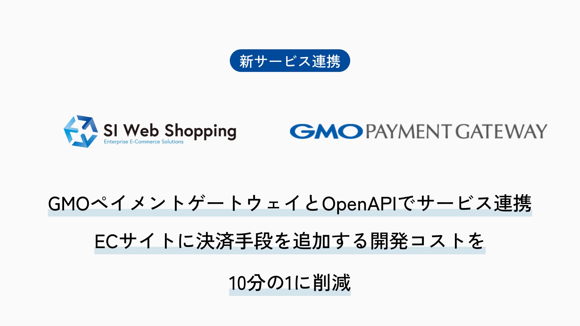 SI Web Shopping、GMOペイメントゲートウェイとOpenAPIでサービス連携。ECサイトの決済手段の追加開発コストを10分の1に削減しEC事業者の負担を大幅に軽減