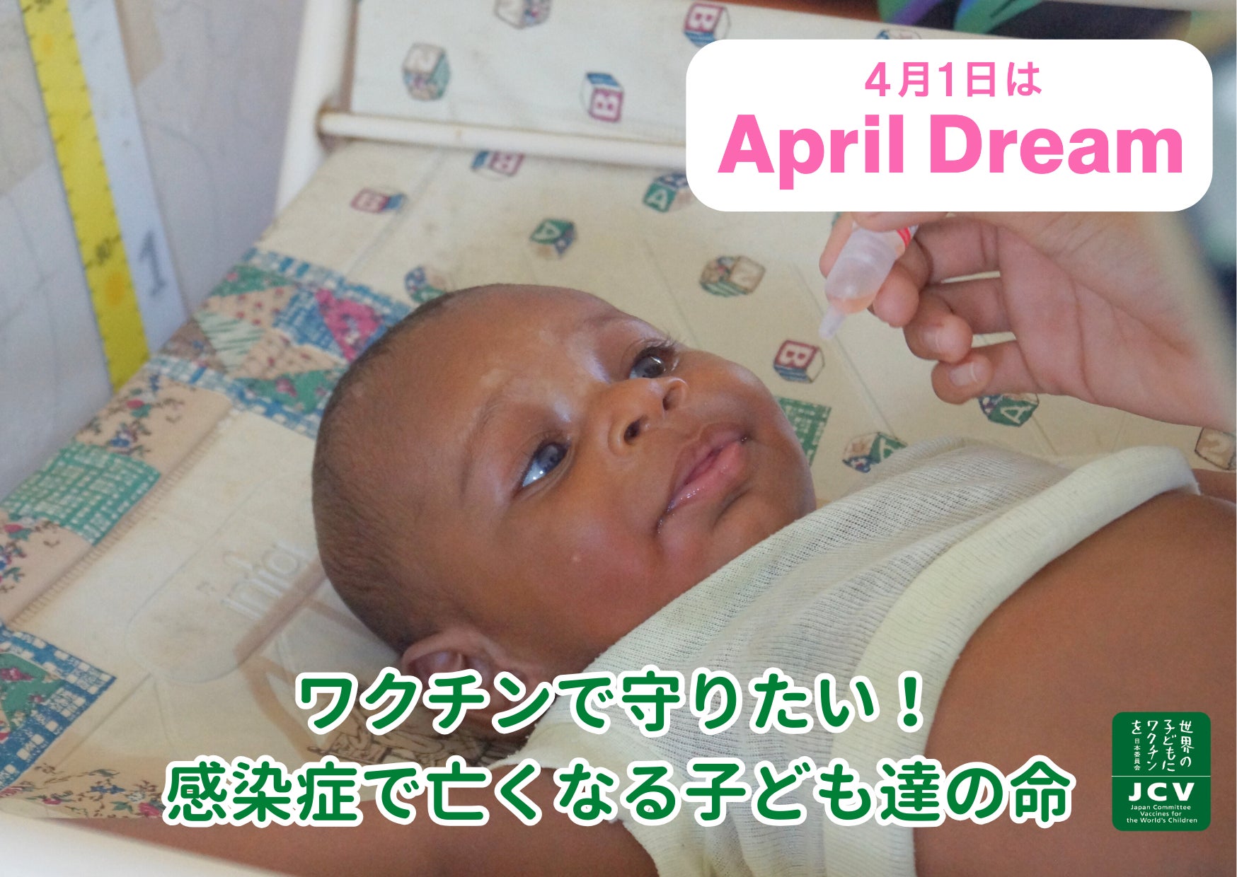 当会は、4月1日に夢を発信する日にしようとするApril Dreamに賛同しています。このプレスリリースは、認定NPO法人 世界の子どもにワクチンを 日本委員会の夢です。