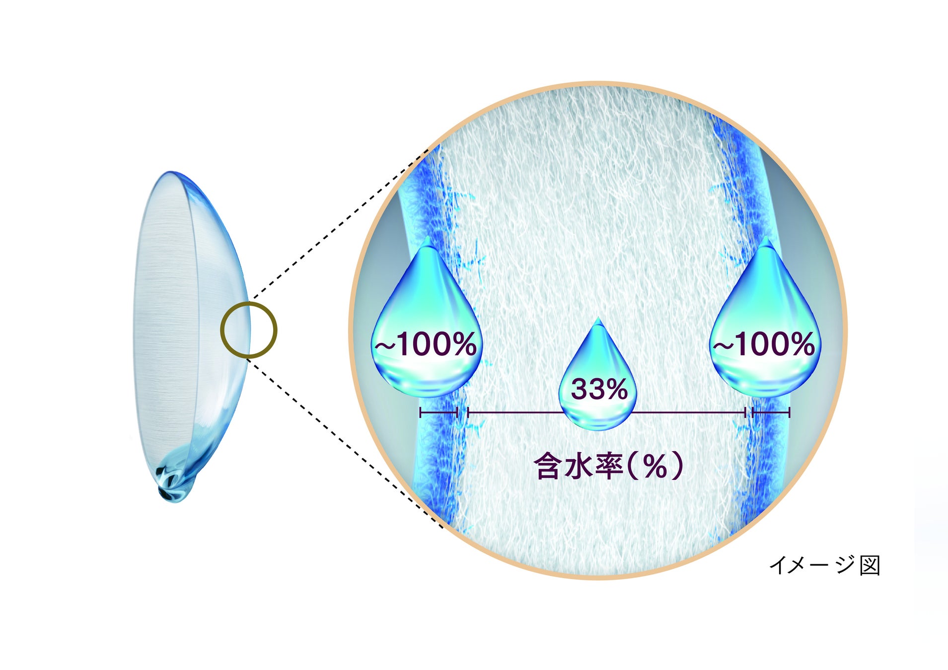 レンズコアとレンズ表面の含有率を変化させた”水のグラデーション”構造(注3)*1、2でワンランク上の快適な装用感(注2)*3を実現