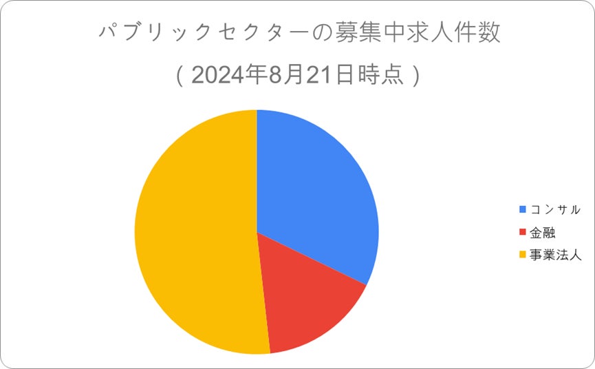 一方、募集中求人件数でみると、コンサルティングファームの存在感が、パブリックセクターの領域で大きく増しています。