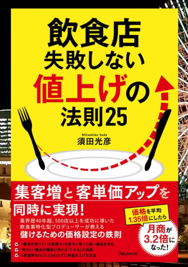 フォレスト出版株式会社(所在地:東京都新宿区、代表取締役:太田宏)は、2024年11月21日(木)以降順次、『飲食店失敗しない値上げの法則25』(須田光彦 著)を全国の書店およびネット書店にて発売いたします。飲食業界歴40年以上、繁盛店500店超をプロデュースしてきた著者が、集客と客単価を同時に向上させるための「値上げの成功法則」をわかりやすく紹介した一冊です。