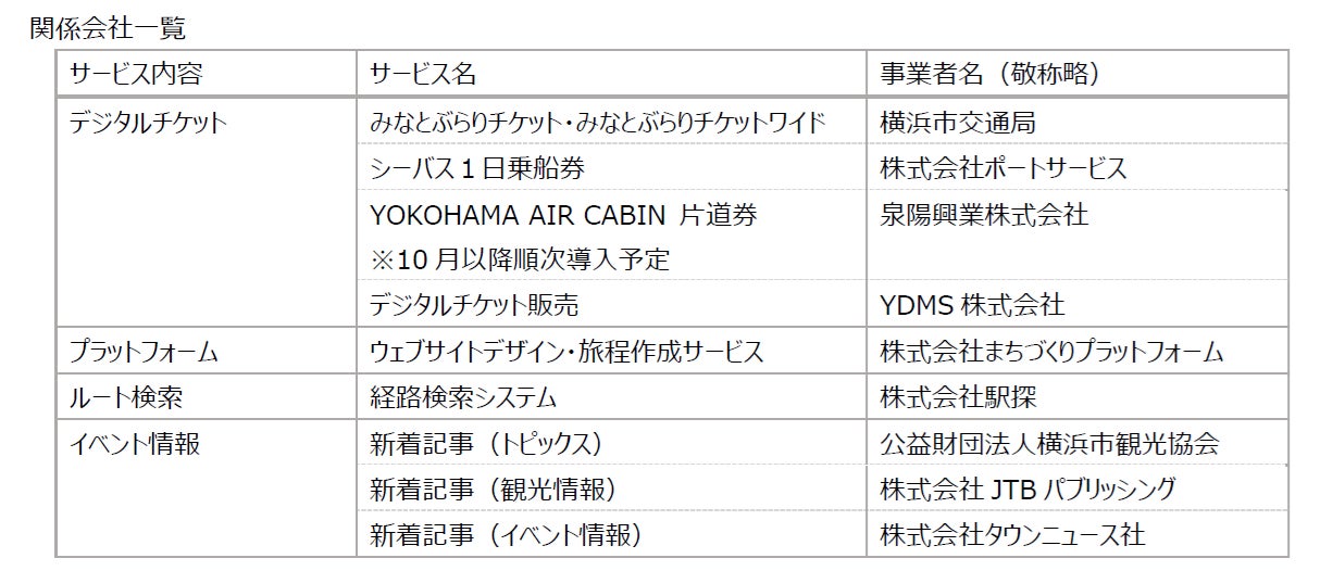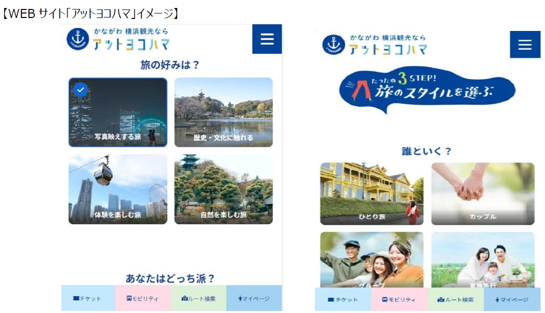 株式会社駅探(本社:東京都千代田区、代表取締役社長:金田直之、以下「当社」)は株式会社アットヨコハマ(本社:横浜市神奈川区栄町7-1/代表取締役:上野健彦・宮原漢二、以下「㈱アットヨコハマ」)が2024年10月1日より提供を開始した「神奈川に行きたくなる」「横浜に行きたくなる」新たな観光WEBサイト「アットヨコハマ」のリニューアルプロジェクトに観光支援型MaaS機能を提供します。