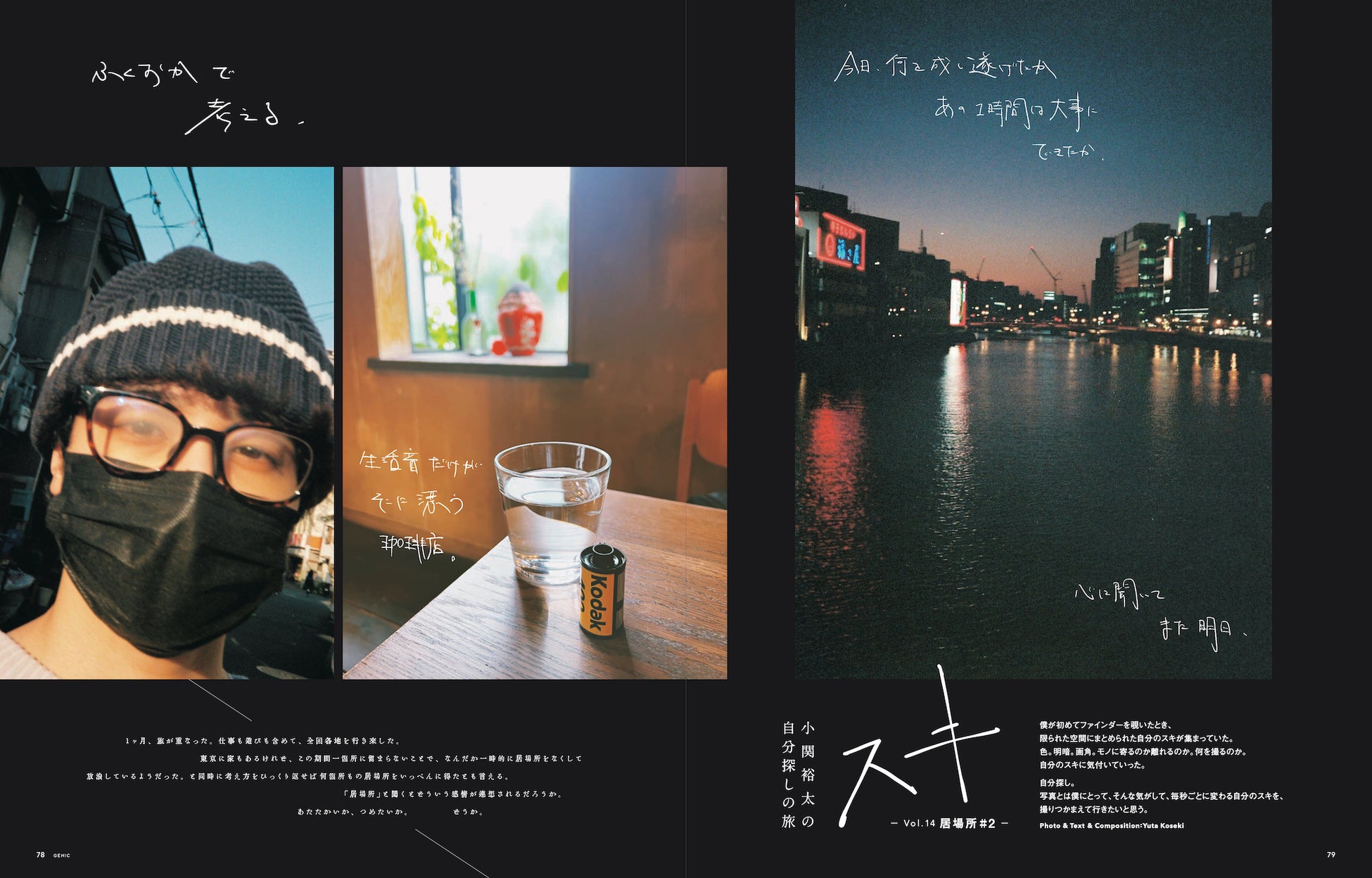 連載第14回は前回に引き続き、小関裕太が撮影した旅先写真を「居場所 #2」と題して掲載。本人構成による4ページをお楽しみください。