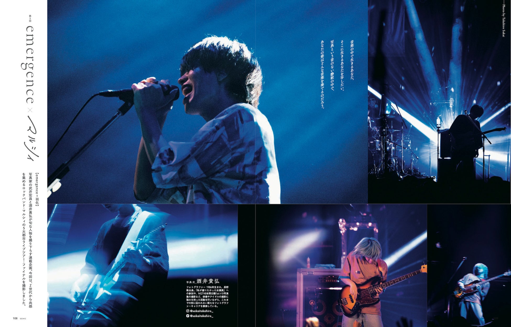 写真家の武井宏員と酒井貴弘が、羽ばたきの時を迎えた旬の人物を撮り下ろす連載企画【emergence=羽化】。第5回は、Z世代から共感を集めるロックバンド・マルシィの5大都市ライブツアー・ファイナルを撮影しました。