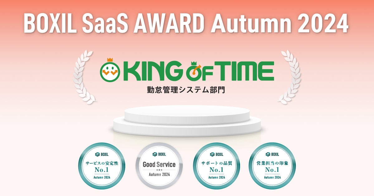「KING OF TIME」が「BOXIL SaaS AWARD Autumn 2024」の勤怠管理システム部門にて4つの賞を受賞