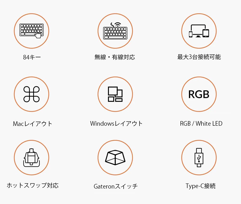 キーキャップ素材:Double-shot ABS(USレイアウト)、ABS(JIS)