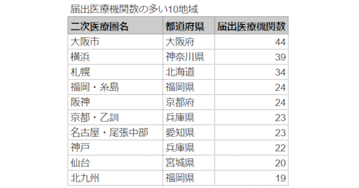 DPC以外の病院も含めた二次医療圏ごとの届出件数や詳細は