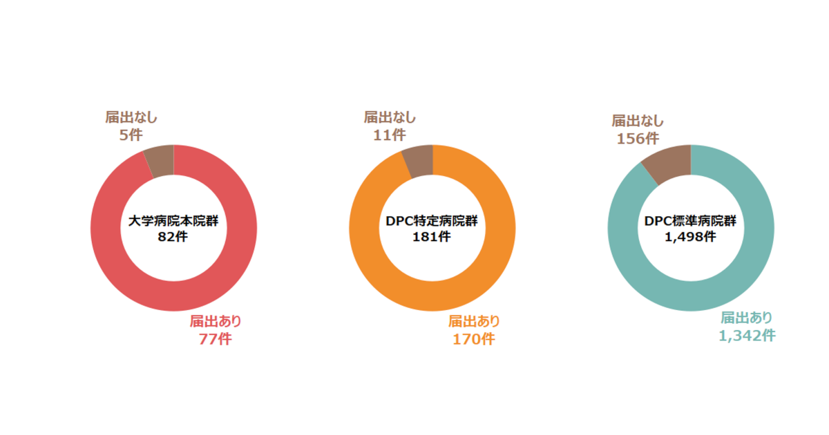 - 大学病院群で1月時点で届出のなかったのは、札幌医科大学附属病院、防衛医科大学校病院、昭和大学病院、日本大学医学部附属板橋病院、順天堂大学医学部附属順天堂医院の5件でした。