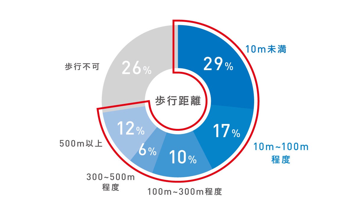 【WHILLユーザー 歩行距離別 割合(%)】