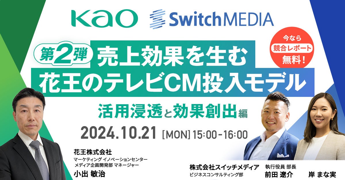 【スイッチメディア セミナー】「第2弾!売上効果を生む花王のテレビCM投入モデル~活用浸透と効果創出編~」花王×スイッチメディアの共催オンラインセミナーを10/21(月)に開催
