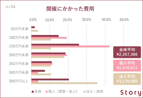 一方で法人主催の場合は300万円以上の大規模な会が最多となり、前回と変わらない結果でした。
