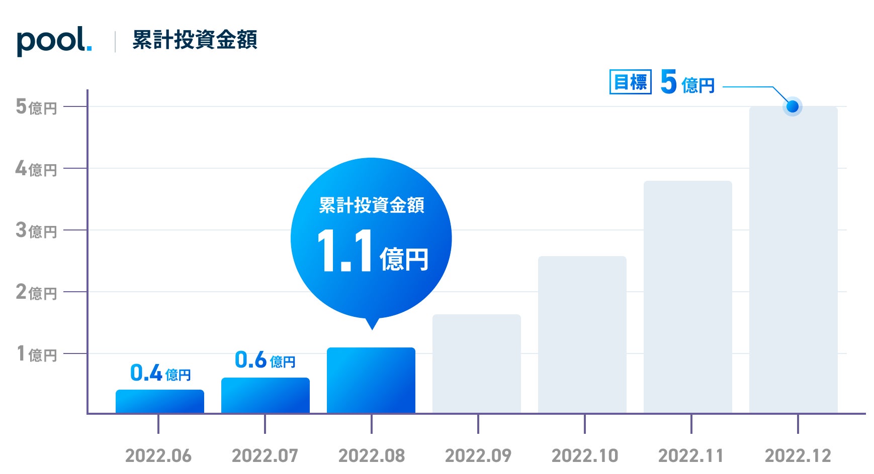 Poolのご利用者様アンケートでは「昨今の外国情勢の煽りを受けた円安・インフレ・市場の乱高下など先行きが不透明な中で、新たな資産運用の受け皿として期待している」などのご意見をいただいております。継続ユーザーによる投資単価は150-200%程度増加しており、運用実績を重ねる中で、分散投資先の新たな選択肢として評価いただいております。