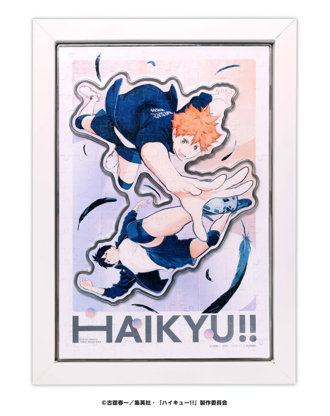 日向と影山がまるで宙を浮いているように見えるダイカットのビジュアルが、ブリスターの凹凸でさらに躍動感が増したジグソーパズルです。